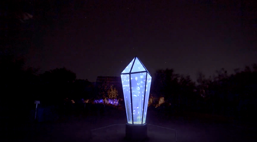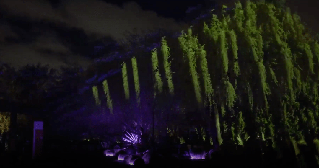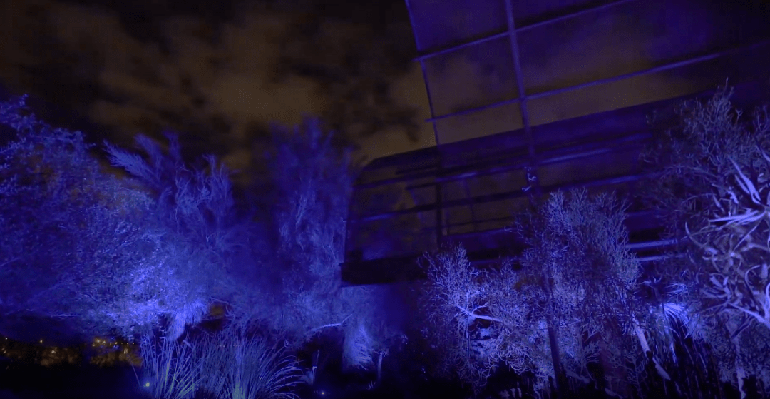巧妙運用投影和照明,利用植物園不同的地勢特點(diǎn),將夜間植物園打造得與白天截然不同。