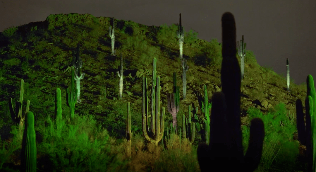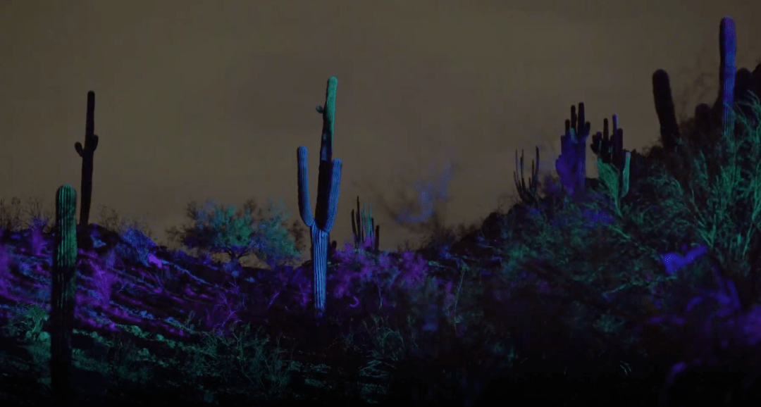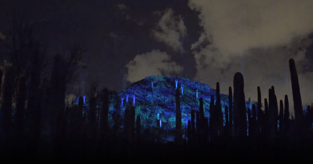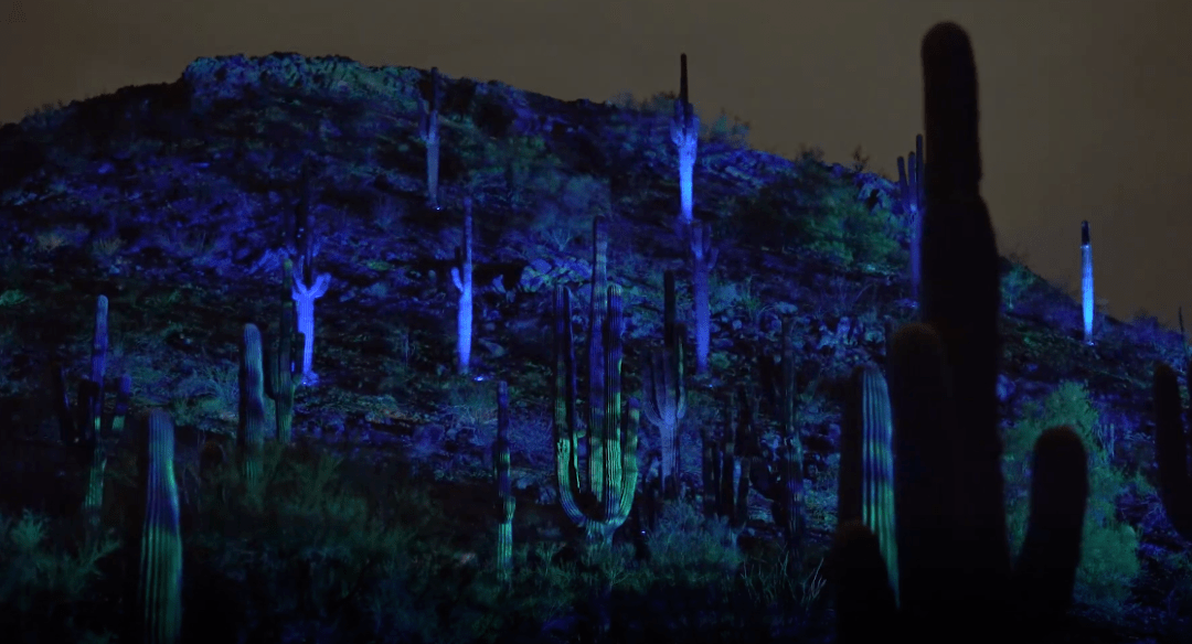 Desert Chorale利用一片生長(cháng)著(zhù)巨柱仙人掌的小山坡創(chuàng )作展覽的內容,每隔20分鐘就會(huì )上演一次光影表演。