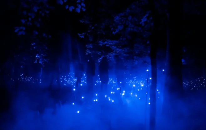 北部森林的燈光和聲?裝置充分展現了??然未溢于?表的語(yǔ)?。